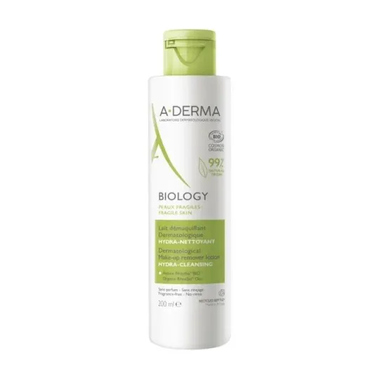 Pour démaquiller et nettoyer efficacement et avec une extrême douceur les peaux fragiles du visage, A-Derma Biology Lait Démaquillant Bio dermatologique hydratent et nettoyant.