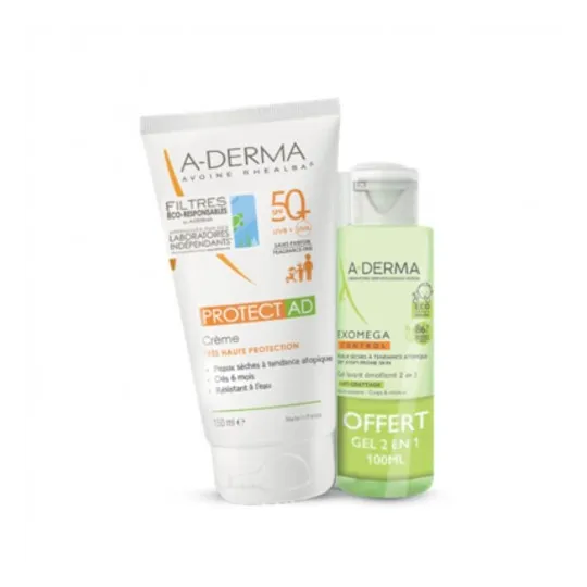 A-Derma Protect AD SPF50+ Crème 150ml + Gel Lavant Exomega control 100ml OFFERT