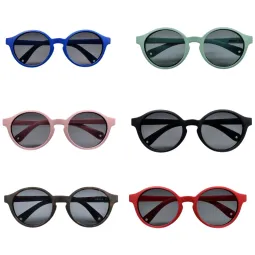 Esthétiques, ludiques, aux coloris tendres pour garçons et filles, les lunettes de soleil, spécialement étudiées pour les petits, s'adaptent à la morphologie du visage grâce à une monture flexible, des branches galbées antidérapantes et une zone plus souple en fit tech au niveau du nez.