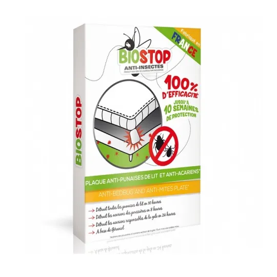 Cette Plaquette anti-punaise de lit et acariens de Biostop offre jusqu'à 10 semaines de protection.