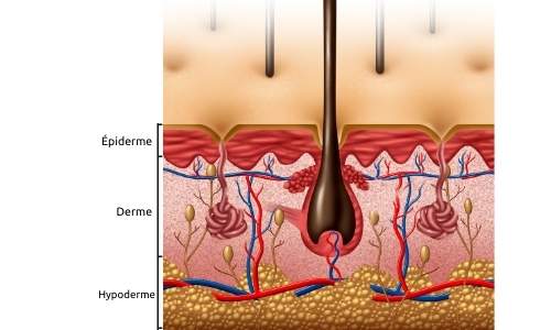 La peau est composée de 3 couches : L’épiderme, le derme et l’hypoderme.