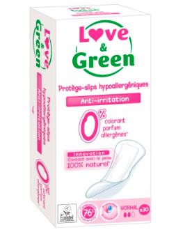 Love and green est une marque qui vend des protège slip hypoallergénique écologiques.