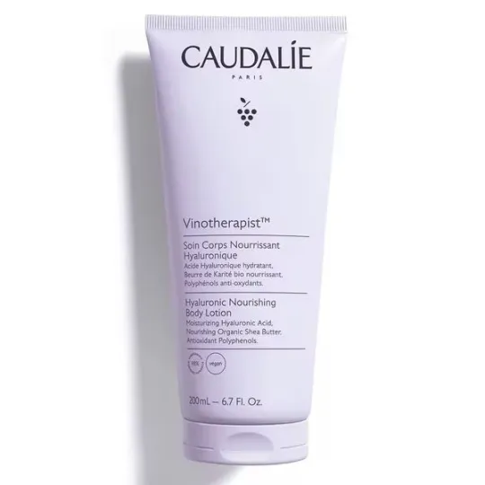 Le Soin Corps Nourrissant Hyaluronique de Caudalie hydrate et nourrit instantanément la peau, elle retrouve douceur, souplesse et est plus lumineuse tout au long de la journée, comme après un soin au Spa Vinothérapie. Ce soin est doté d'une texture fraîche et légère qui pénètre rapidement sans laisser d'effet gras et enveloppe la peau d'une senteur délicate.