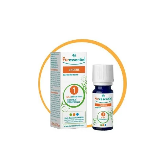 Puressentiel Huile Essentielle Encens permet de combattre les infections de l'appareil respiratoire. Elle renforce les défenses immunitaires et calme l'angoisse. Elle est utilisée également en rhumatologie et contre les migraines.