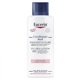UreaRepair PLUS Emollient 5% d’Urée Parfumé apporte les soins quotidiens nécessaires aux peaux sèches et rugueuses. Sa combinaison unique d'ingrédients (urée, facteurs naturels d'hydratation (NMF) et céramides) fixe l'humidité et répare la barrière naturelle de la peau pour éviter les pertes en eau.