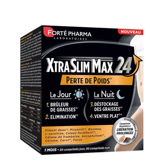 Forté Pharma XtraSlim Max 24 est un complément alimentaire qui agit sur la perte de poids de jour comme de nuit.