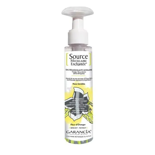 Garancia Source Micellaire Enchantée à la fleur d'oranger démaquille tout en douceur et naturellement.