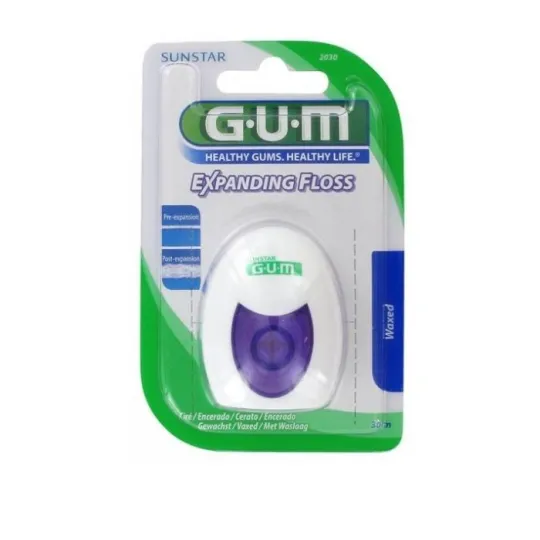 GUM Expanding Floss Fil Dentaire Ciré 30 mètres est un fil dentaire fin et facile à glisser entre les dents. Il se dilate pendant l'utilisation pour s'adapter à tous les espaces interdentaires et nettoyer davantage de surfaces dentaires et sous la gencive.