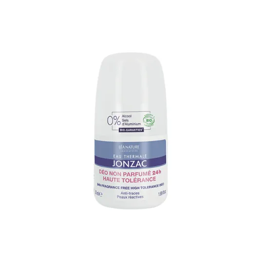 Jonzac Déodorant non Parfumé 24 heures Haute Tolérance 50ml a été forumlé pour l'hygiène des peaux réactives. Il ne laisse pas de trace.