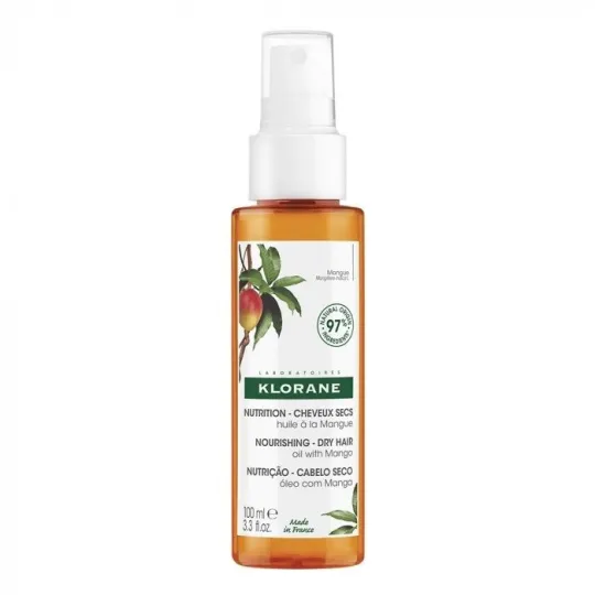 Klorane Nutrition Cheveux Secs Huile à la Mangue offre aux cheveux secs et abîmés des éléments nutritifs et réparateurs pour retrouver une chevelure lumineuse et soyeuse.