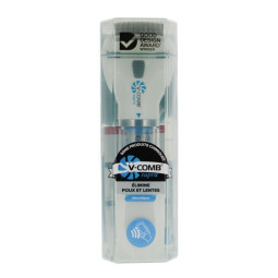 Le peigne électrique anti-poux et lentes V-Comb est vendu avec un câble de branchement, 4 filtres de capture, un guide, un manuel d'instructions et une brosse de nettoyage.