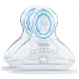 Cette tétine ne contient pas de Bisphénol A. Les tétines Nuk physiologiques 2ème âge M en Silicone sont conditionnées par lot de 2.