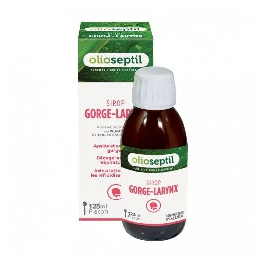 Le sirop Olioseptil est recommandé pour apaiser la gorge et faciliter le désencombrement des voies respiratoires.