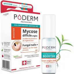 Poderm Sérum Ongles Booster Mycoses Difficiles est un allié majeur dans le traitement de la mycose de l’ongle. En effet, il accélère le processus de réparation de l’ongle jusqu’à diviser la durée totale de traitement par 2 ! Il est donc recommandé dans le cas où vous souhaitez retrouver des ongles sains, lisses et brillants plus rapidement et dans le cas où vous avez une mycose de l’ongle sévère et difficile à traiter.