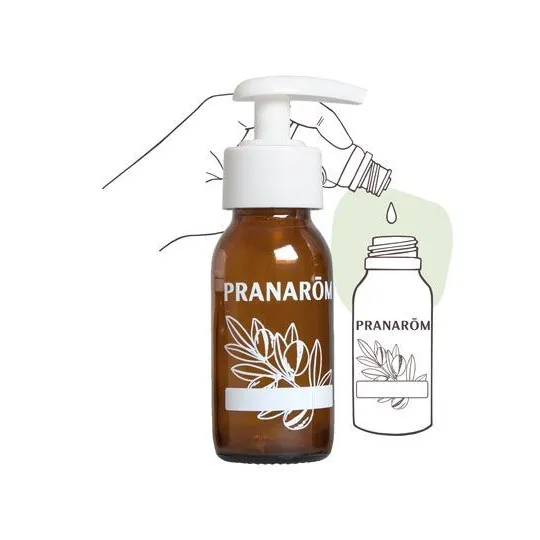 Ce flacon de verre ambré est doté d'une pompe pour une utilisation plus aisée de votre préparation.