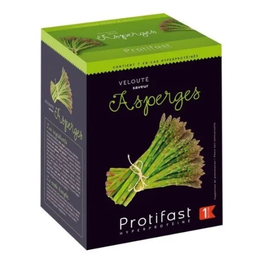 Protifast Velouté Asperge est une préparation minceur hyperprotéinée associant 3 sources de protéines (lait, blanc d'œuf et soja sans OGM) qui assure un équilibre et une concentration élevée en acides aminés essentiels. Chaque sachet contient 18g de protéines hautement assimilables.