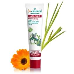 Puressentiel Anti-Pique Crème Multi-Apaisante est une association d'actifs végétaux pour aider à soulager les sensations de démangeaisons dues aux piqûres d'insectes et de végétaux. Il s'agit de 8 huiles essentielles de 4 huiles végétales et de 3 extraits végétaux.