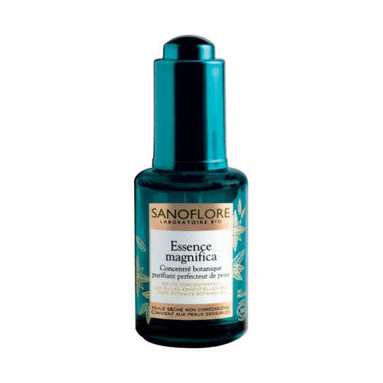Sanoflore Magnifica Essence est un soin anti imperfections formulé à base d'un complexe de 9 huiles essentielles très concentrées. Il réconforte et apaise les peaux sensibles et acnéiques présentant des imperfections, sans les décaper.