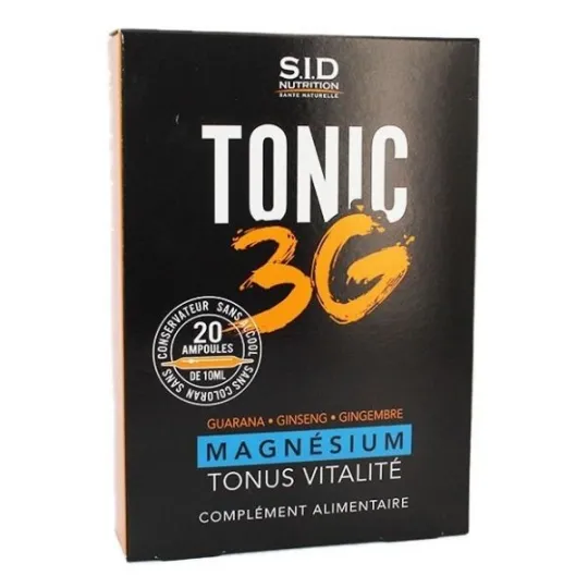 Sid Nutrition Tonic 3G Magnésium 20 Ampoules est un complément alimentaire sous forme d'ampoules à diluer dans de l'eau. Il est destiné à booster votre énergie lors d'épisode de fatigue passagère ou de coup de mou.