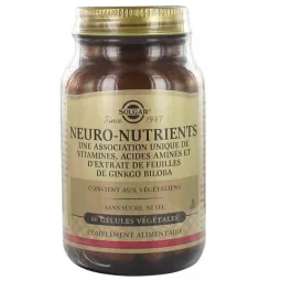 Les gélules végétales de Neuro-Nutrients Solgar fournissent une formule synergique de vitamines, plantes et d'acides aminés retrouvés dans les tissus nerveux.