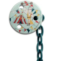 Le clip fixé au vêtement comporte un petit anneau pour attacher la sucette.