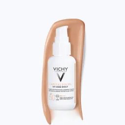 Le fluide teinté anti-photovieillissement UV-AGE DAILY SPF50+ de Vichy forme un bouclier contre les UVA, les UVB, les radicaux libres et la pollution.